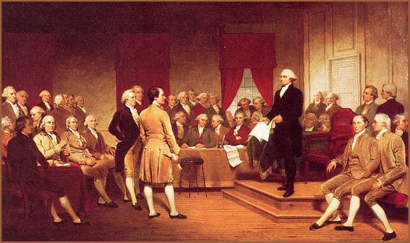 The distinguished group of delegates who assembled in Philadelphia in May 1787 included many who would be important in the conduct of the new nation's affairs. Among them were George Washington, James Madison, Edmond Randolph, and George Mason of Virginia; Benjamin Franklin, James Wilson and Gouverneur Morris of Pennsylvania: Alexander Hamilton of New York, John Dickinson of Delaware; and Charles Pinckney of South Carolina.